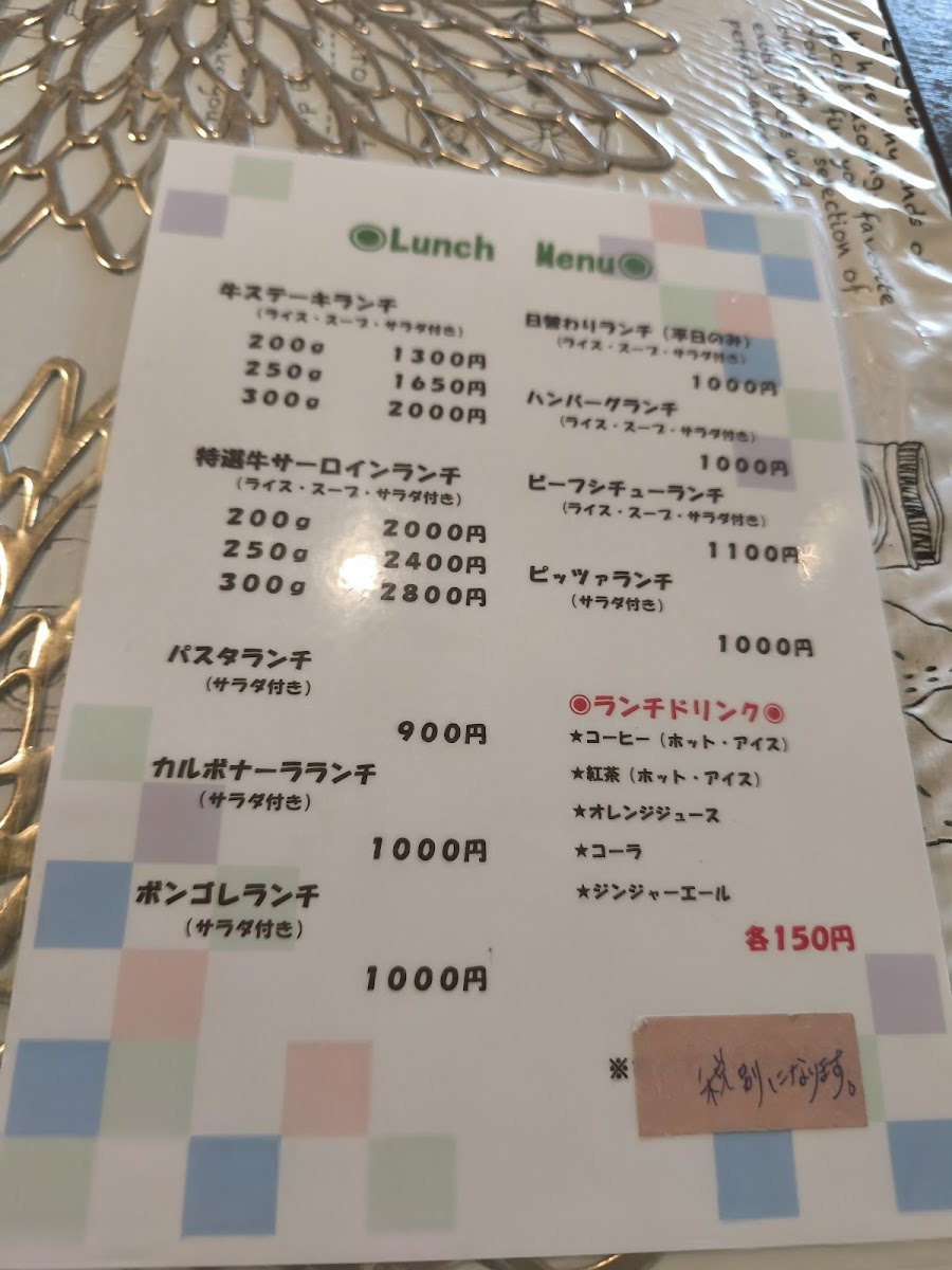 Meat enthusiasts will appreciate the アンガス牛 サーロイン, a succulent Angus beef sirloin that promises tenderness and flavor with every bite. Another meat option is the ステーキ180g, a well-portioned steak that is perfect for those craving a savory, satisfying meal. For a lighter yet equally flavorful option, try the ランチ しょうが焼き, a ginger pork lunch set that balances savory flavors with a hint of spice. If you're in the mood for something a bit more casual, the ハンバーグランチ (hamburger lunch) is a comforting choice, served with sides that enhance the meaty flavor.