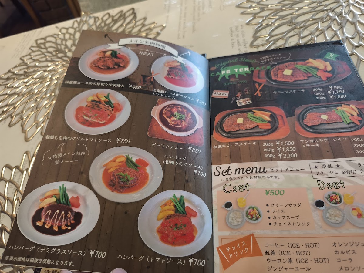 For a complete and satisfying meal, consider the アールセット ステーキ, a steak set that combines a perfectly cooked steak with complementary sides for a well-rounded meal. With its varied offerings, from hearty main dishes to refreshing drinks and decadent desserts, Cafe Terrace R ensures a memorable dining experience for all guests.